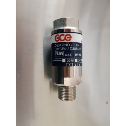 Valvola di sicurezza per riduttore Ossigeno. MV93-RP. Applicata in uscita al riduttore di pressione , attacco 3/8", garantisce la protezione totale contro i ritorni di fiamma e di gas . COD 80205